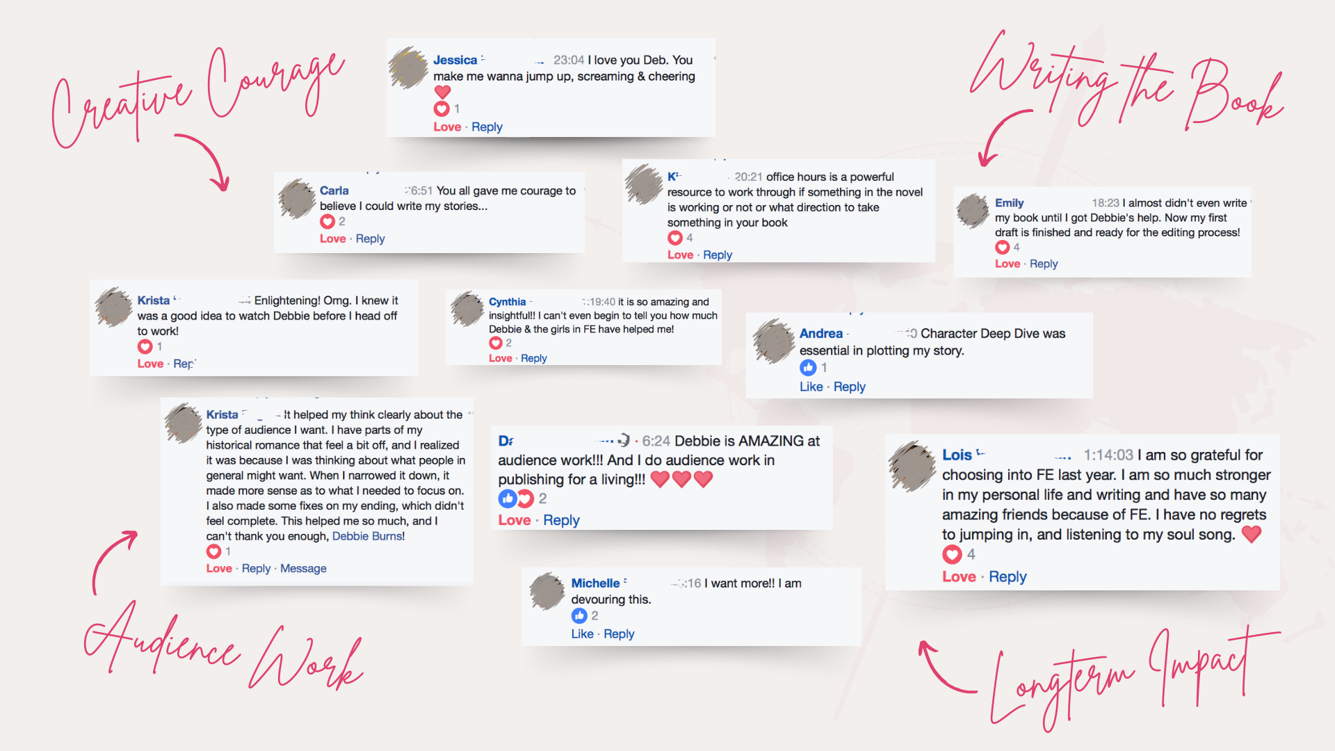 Between Google and your local library, you can find anything you need to know about writing for free. But what you won’t find is the roadmap you need to get your book done. You won’t find accountability and the magic of human alchemy that exists in our group. And you definitely won’t find someone who can help you identify and remove your personal doubts, fears and blocks. So if “how” is all you need, then definitely cozy up to Google!